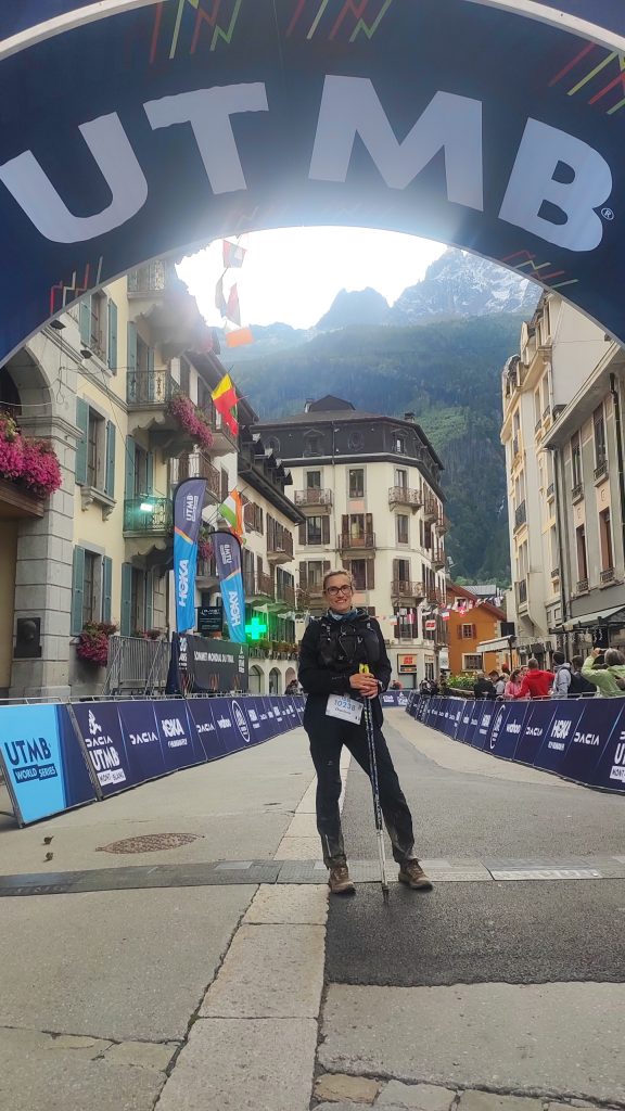 Après 32h27 de course incluant 2 nuits blanches et des problèmes de pieds, j’arrive à Chamonix à la 227e place au général et 22e féminine. Près de 50% des participants ont abandonné en cours de route.